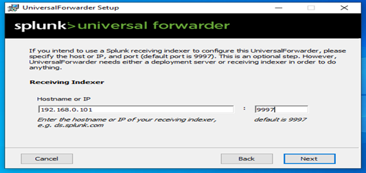 Configuring splunk forwarder in windows machine